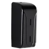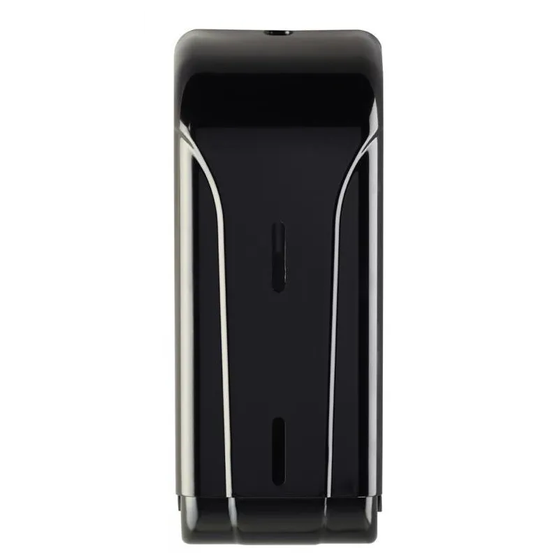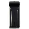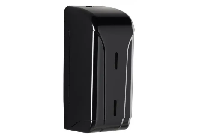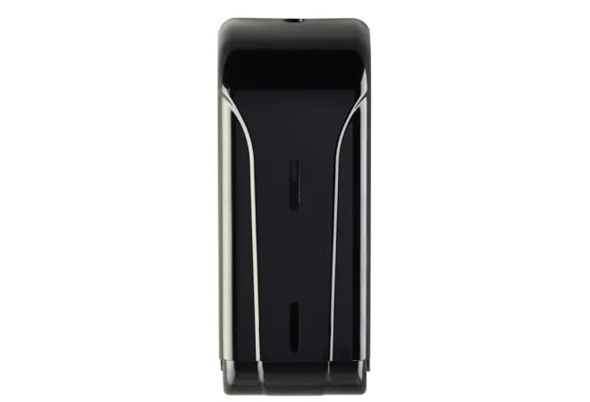 Pratique et idéal pour s'essuyer les mains après un passage aux toilettes, ce dérouleur d'essuie-mains en plastique noir pour bobine 150 formats à dévidage central s'installe facilement dans n'importe quel espace sanitaire. Résistant, il permet un conditionnement optimal pour l'hygiène des utilisateurs.