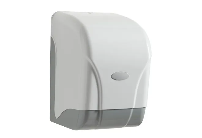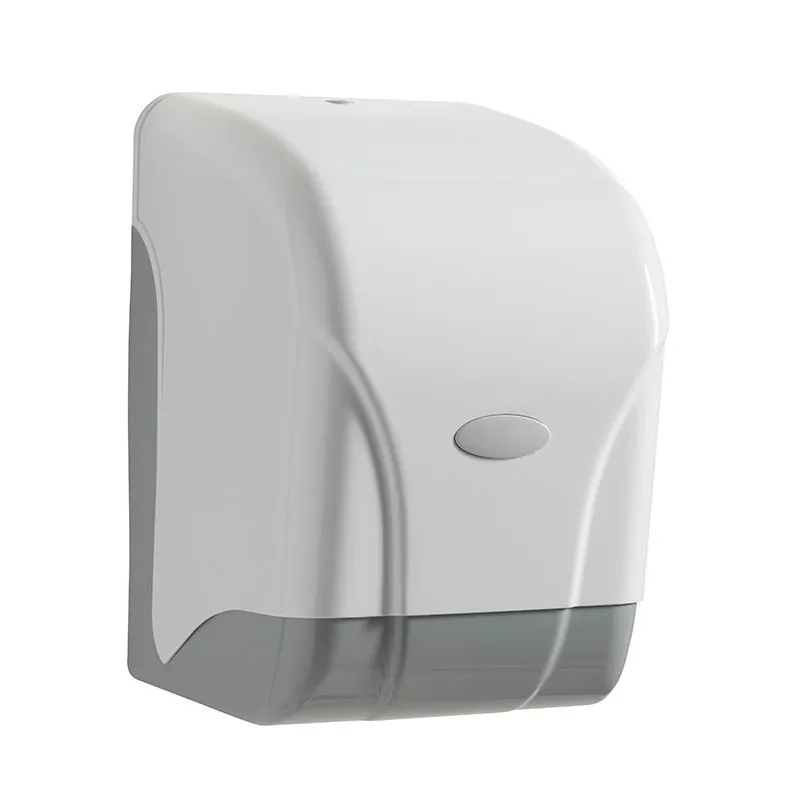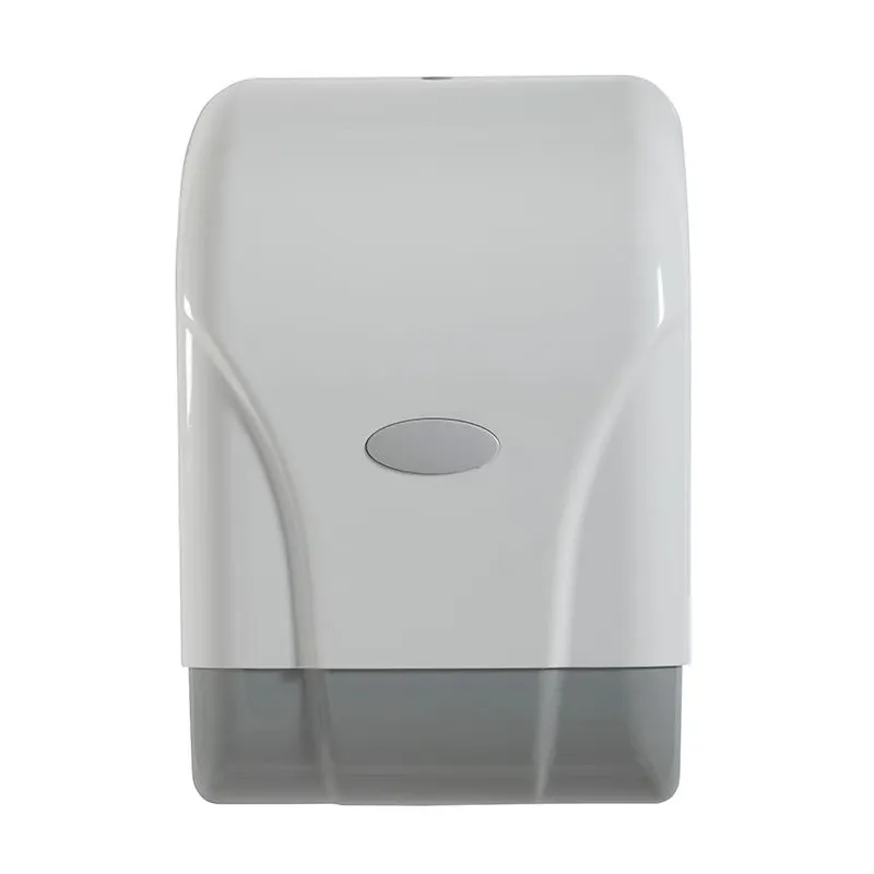Pratique et idéal pour s'essuyer les mains après un passage aux toilettes, ce grand dérouleur d'essuie-mains en plastique blanc pour bobine 450 formats à dévidage central s'installe facilement dans n'importe quel espace sanitaire. Résistant, il permet un conditionnement optimal pour l'hygiène des utilisateurs.