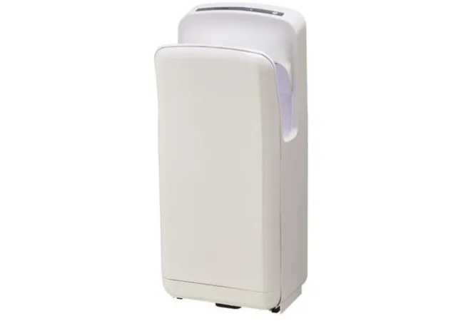 Leader Équipements vous propose pour vos sanitaires une référence à poser au sol, pratique pour faire sécher les mains après un passage aux toilettes en évitant l'utilisation de papier jetable : le sèche-mains automatique vertical en ABS blanc garanti 1 an qui s'installe facilement dans n'importe quel espace sanitaire. Résistant, il permet un conditionnement optimal pour l'hygiène de tous les utilisateurs.