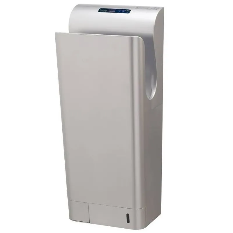 Leader Équipements vous propose pour vos sanitaires une référence à poser au sol, pratique pour faire sécher les mains après un passage aux toilettes en évitant l'utilisation de papier jetable : le sèche-mains automatique vertical design Prestige en ABS avec stérilisation antibactérien UV en gris métallisé garanti 3 ans qui s'installe facilement dans n'importe quel espace sanitaire. Résistant, il permet un conditionnement optimal pour l'hygiène de tous les utilisateurs.