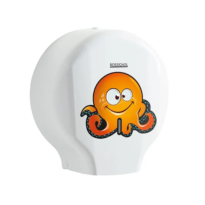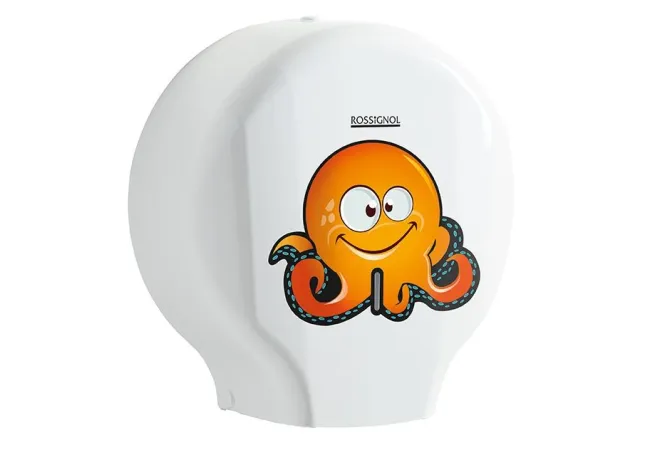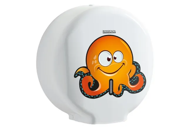 Vous avez installé des toilettes et sanitaires pour les enfants dans une école, un centre de loisirs ou encore une aire de jeux ? Optez pour un équipement adapté ! Ce dévidoir de papier toilette blanc avec un autocollant représentant un poulpe rigolo de couleur orange est un choix idéal. Ce dérouleur de papier WC est à la fois fonctionnel et ludique : un vrai plus qui amusera les enfants tout en les incitant à respecter les gestes d’hygiène.