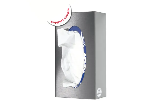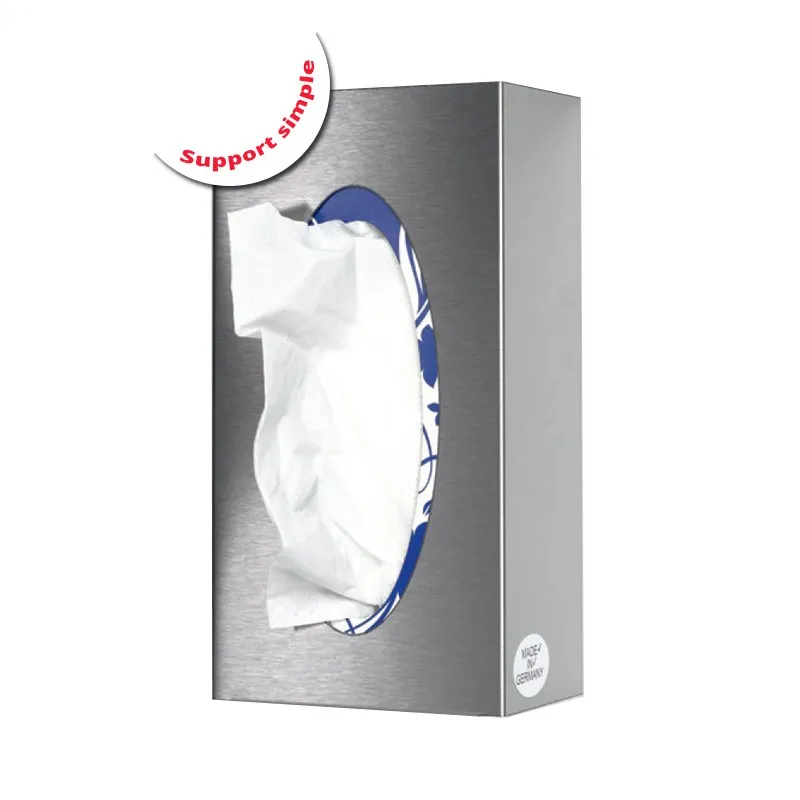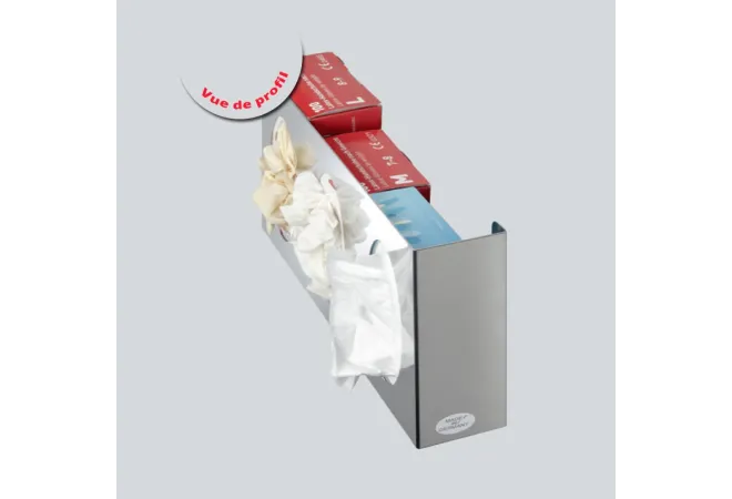 Un distributeur en inox pour mettre à disposition des gants et (ou) des mouchoirs en papier. L'inox utilisé pour ce produit est de haute qualité et très résistant. Très pratique grâce à sa possibilité d'accroche murale (avec accessoires fournis). Le remplacement des boites se fait par le haut très rapidement. Utile en période d'épidémie tel qu'actuellement avec le Covid 19.