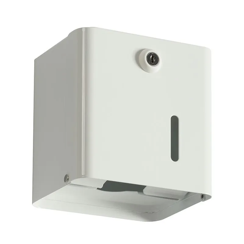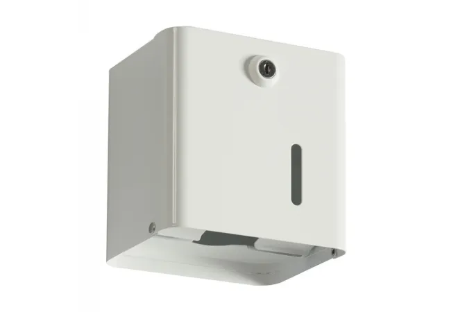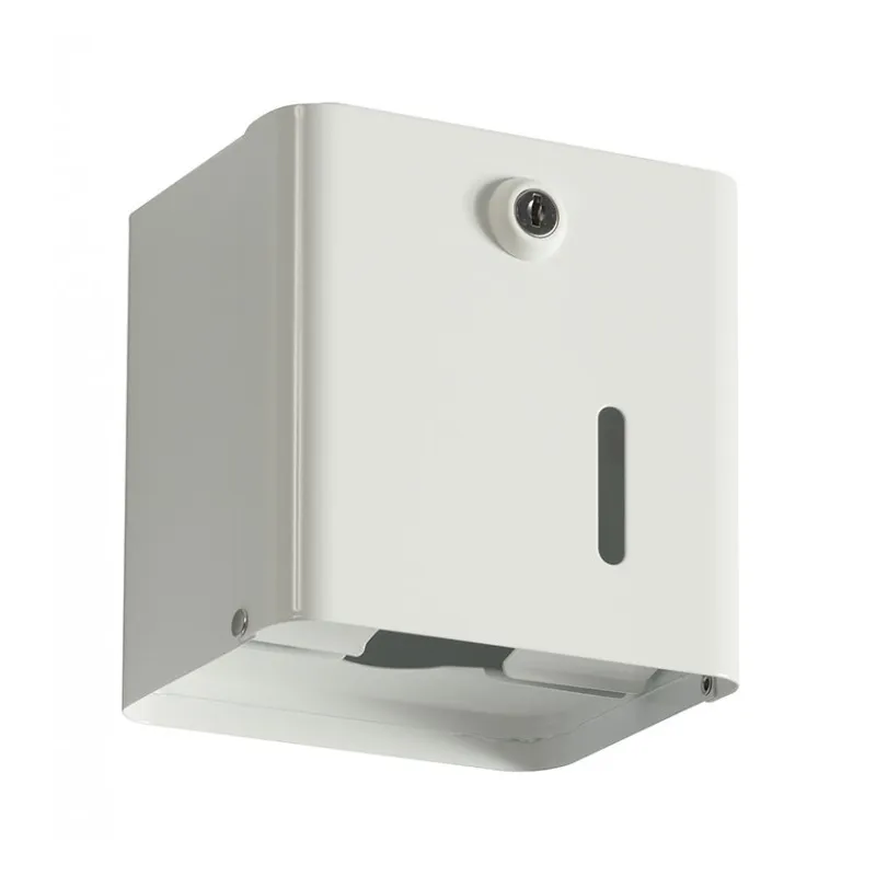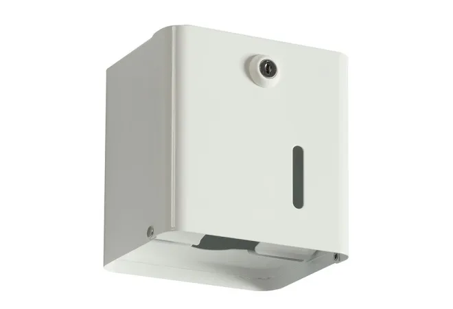 Le distributeur de papier toilette offre une solution pratique et résistante pour la distribution du papier en format plié et pré-coupé. Il s'installe facilement et dispose d'une serrure pour faciliter son remplissage. Disponible en blanc uniquement.