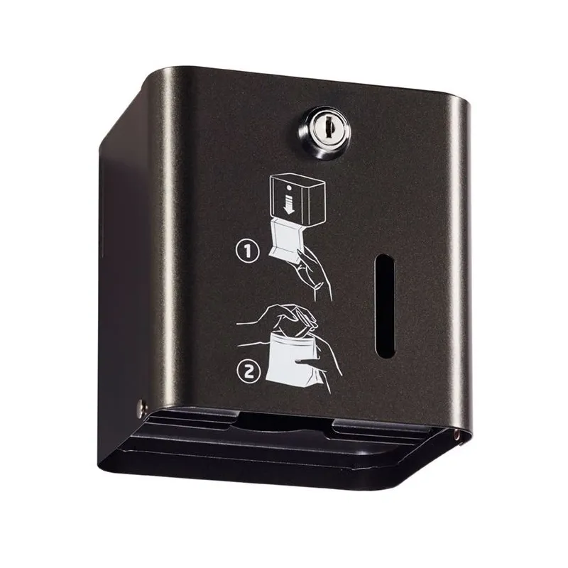 Le distributeur de sachets pour protections hygiéniques offre une solution pratique et résistante pour la distribution de 200 sachets en format plié et pré-coupé. Il s'installe facilement et dispose d'une serrure pour faciliter son remplissage par vos employés.