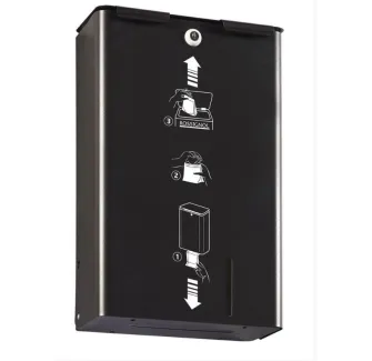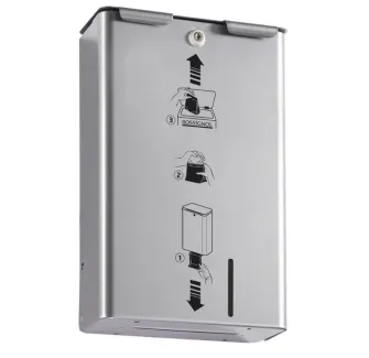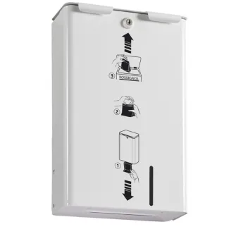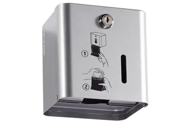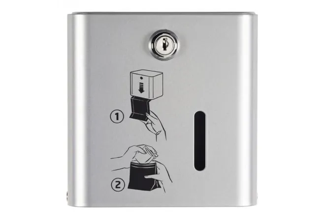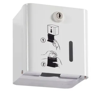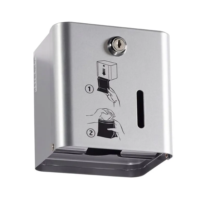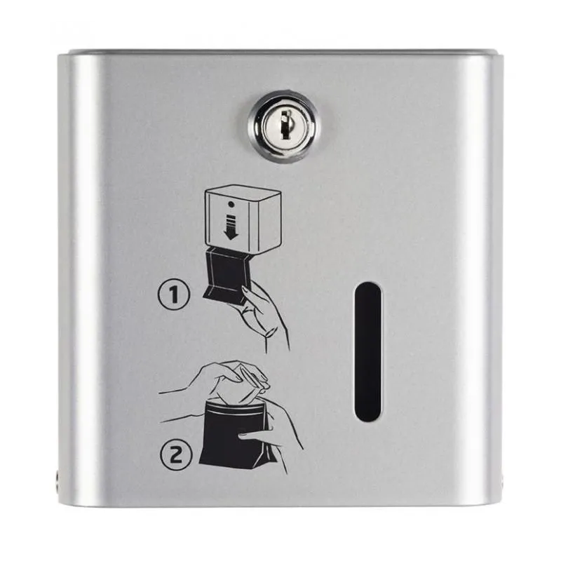 Le distributeur gris métal de sachets papiers pour protections hygiéniques offre une solution pratique et résistante pour la distribution de 200 sachets en format plié et pré-coupé. Il s'installe facilement et dispose d'une serrure pour faciliter son remplissage par vos employés.