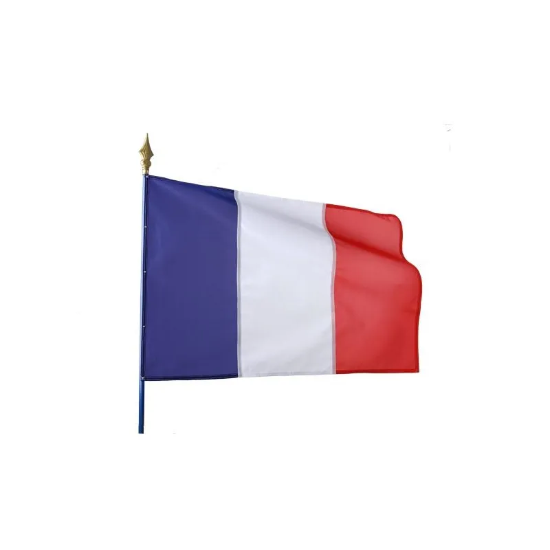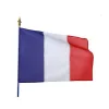 Indispensable pour le pavoisement des édifices publics lors des fêtes commémoratives, Leader Équipements vous propose le drapeau réalisé en maille polyester de la France cloué sur hampe en bois. Disponible en six tailles différentes au choix, découvrez notre drapeau français spécial extérieur idéal pour être suspendu sur support mural ou sur écusson.