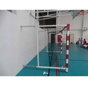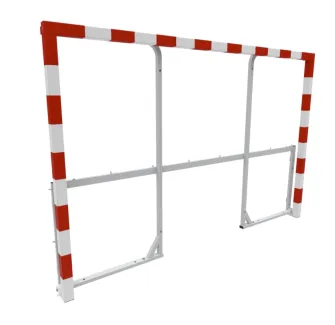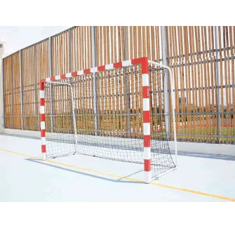 Cage de buts de handball, pour lycée et collège, en acier galvanisé d'une dimension de 3 m x 2 m (taille standard). Ce but de hand possède des renforts sur l'arceau, ce qui lui apporte une très grande solidité. Ces crochets sont en PVC traité anti-UV.