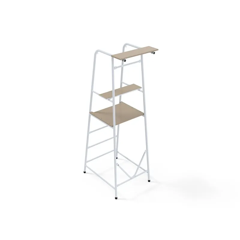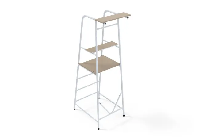 Un podium d'arbitre pour volley, tennis ou badminton. Podium de gamme standard en acier galvanisé plastifié blanc. La hauteur de la plateforme est à 1,30 m du sol. Ce podium possède un bureau d'écriture et peut être utilisé en intérieur comme en extérieur.
