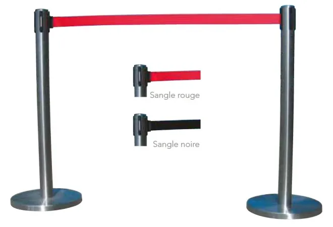 Pour équiper vos halls d'accueil, files d'attentes, aéroports, musées, cinémas..., Leader Equipements vous propose le lot de 2 poteaux à sangles rétractables. La sangle est d'une longueur de 2 m et vous avez le choix entre la couleur noire ou rouge. Le poteau a un socle qui assure une parfaire stabilité.