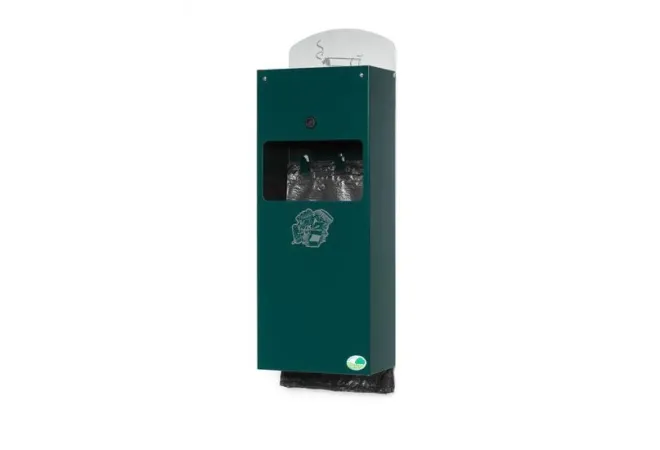 Borne d'hygiène canine avec cendrier et seau intérieur pour aménager vos centres villes et vos jardins publics. Notre distributeur simple pour sacs doggybag en liasse avec cendrier et seau intérieur est disponible en 2 coloris, pose murale ou en option sur poteau.