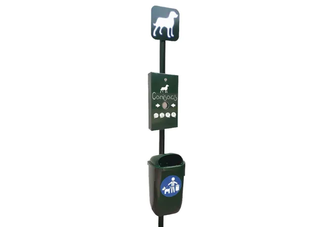 Mât visible à plus de 100 m, 100% aluminium thermolaqué ! Cette borne de propreté pour distribution de sacs pour déjections canines possède également sa poubelle. Tout sous la main pour être sûr de garder les lieux propres. À installer en extérieur, cette borne de propreté ne risque rien, car elle a subi un traitement anticorrosion. Livré avec 500 sachets de déjection canine.