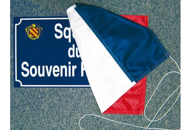 Leader Équipements vous propose 5 modèles de Tissus d'inauguration de plaque de rue tricolore.