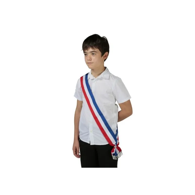 Leader Équipements vous propose l'écharpe tricolore pour jeune élu. Pièce de tissu considérée comme un symbole officialisant et marquant d'une fonction au sein de la République française. Leader Équipements vous propose d'officialiser et d'investir les enfants dans leurs rôles de jeune élu avec notre écharpe ruban tricolore neutre pour enfants élu.