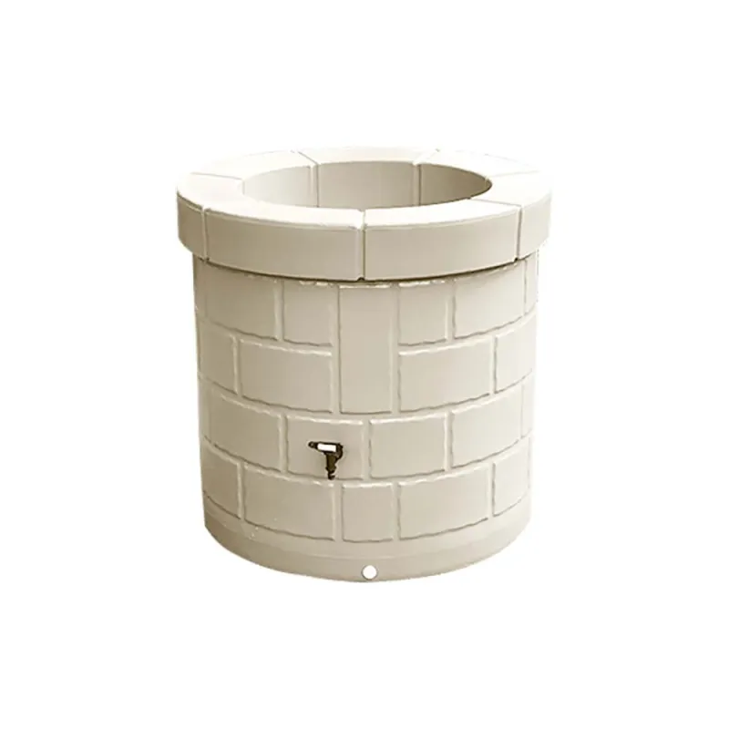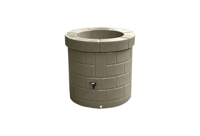 Le collecteur d'eau de pluie décoratif en forme de puits peut contenir jusqu'à 340 litres d'eau. Cela peut vous permettre d'arroser votre jardin ou encore laver votre voiture. Fabriqué en polyéthylène rotomoulé avec un traitement anti-UV. Ce matériau est conçu pour être utilisé à l'extérieur, il résistera aux intempéries, aux températures extrêmes et aux chocs. De plus, il est 100% recyclable.