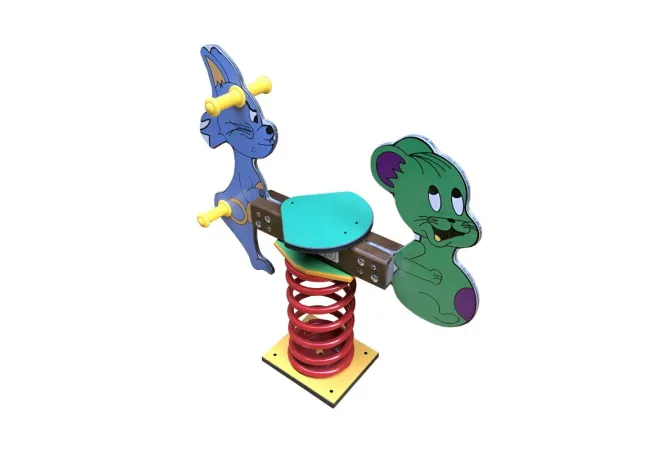 Le jeu sur ressort Chat et Souris est spécialement conçu pour les enfants de 2 à 6 ans. Ce jeu à bascule s'installe idéalement sur les aires de jeux extérieures des collectivités, des aires d'autoroute ou encore dans les écoles.
