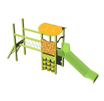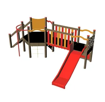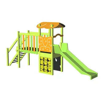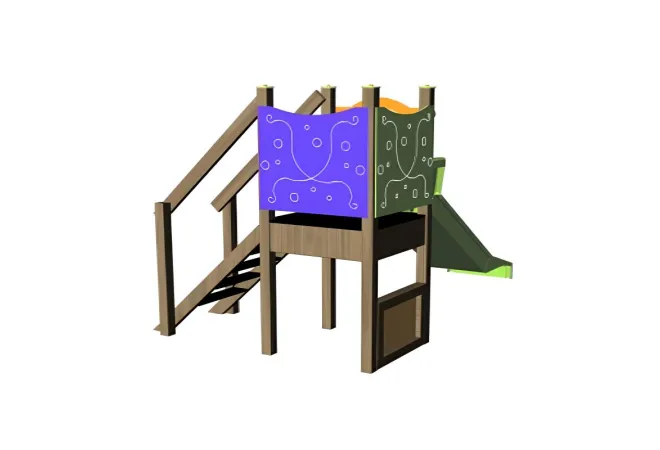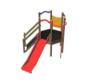 Un petit toboggan en bois pour les enfants de 2 à 6 ans. Ce toboggan fabriqué en pin du nord rouge est traité autoclave pour une très grande résistance dans le temps. La glissière du toboggan est en fibre de verre afin d’éviter tous risques de brûlures pendant la saison d’été. Ce toboggan pour les plus petits peut être installé dans les aires de jeux publics, les cours d’école et les structures d’accueil pour les centres de loisirs.