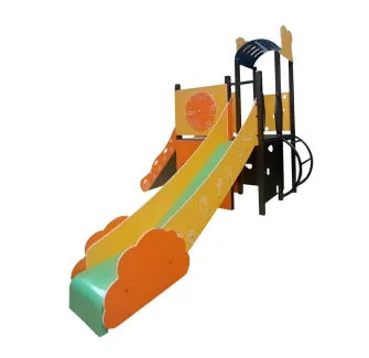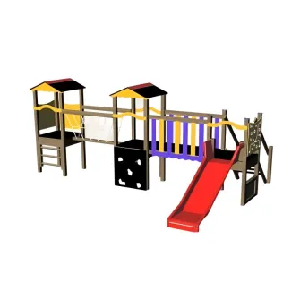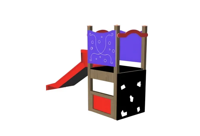 Une petite structure toboggan en bois pour les enfants de 2 à 6 ans. Ce petit toboggan à un accès par mur d’escalade. Ce qui permet aux enfants de se dépasser et de s’essayer à la grimpe par escalade. Un petit module qui demande un encombrement de 2,61 x 0,74 m au sol. Ce qui permet de multiplier les structures sur un petit espace et de faire profiter des jeux en y installant plusieurs structures pour tous les âges.