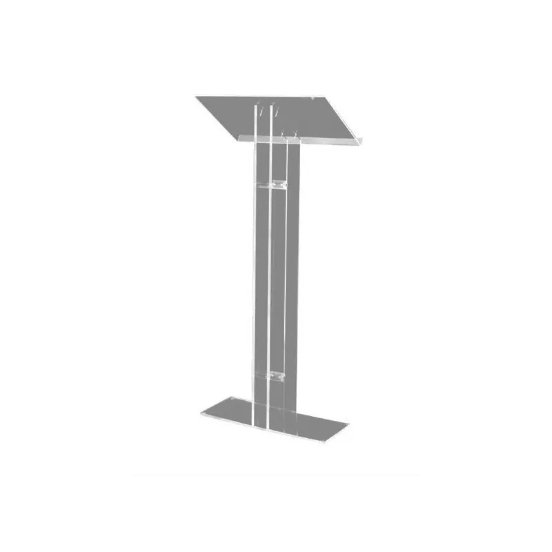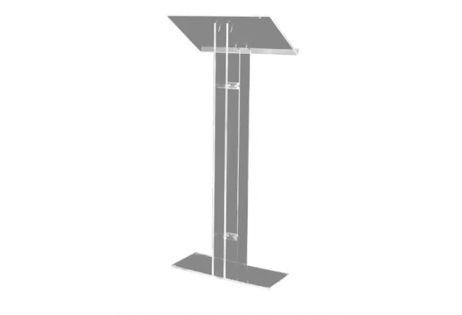 Leader Équipements vous propose le lutrin de conférencier sur pied tout plexi transparent, pour réussir aisément et avec éloquence vos discours pour les élections ou pour vos conférences.