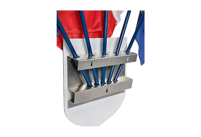 - Écusson monté sur châssis en aluminium pouvant recevoir 1 à 5 drapeaux