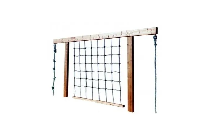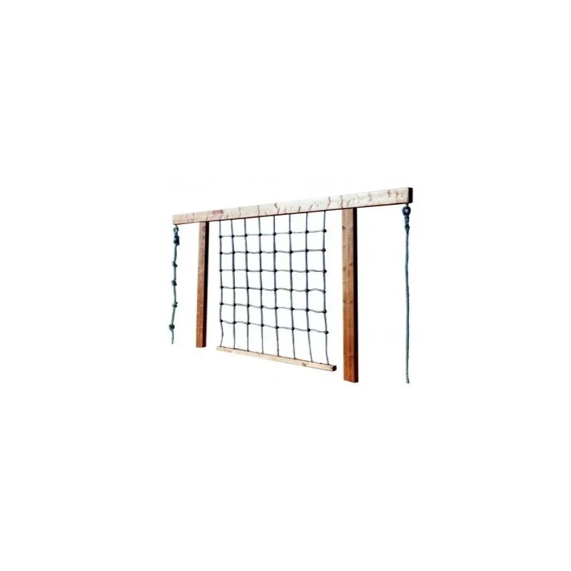 Le filet à grimper sur structure en bois est parfait pour des rencontres dynamiques. Alors qu’il existe une multitude de challenges pour se rendre d’un point à un autre, l’enfant trouvera des points de rencontre où se stopper pour discuter ou observer. Destiné aux enfants entre 4 à 9 ans, le filet à grimper est réalisé en essence du pin du nord rouge, et en cordes aux normes NF et UE. Le jeu extérieur est à sceller, la hauteur de chute est de 156 cm et la surface amortissante obligatoire est de 19 m². Ce jeu à corde fabriqué en France est un bon compromis pour les espaces restreints. Cet équipement offre une collection variée de matériaux et d’activités rendant cet espace riche. Leader Équipements fournisseur direct de jeux extérieur pour les collectivités, campings, aires de jeux, écoles.