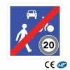 Dimensions et classes de visibilité du panneau indiquant la fin d'une zone de rencontre :