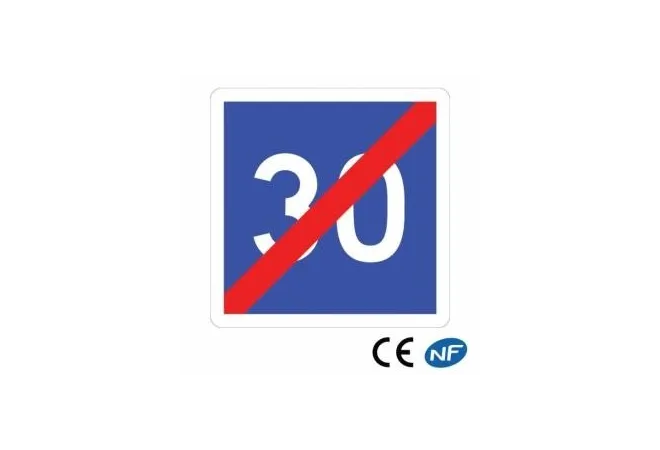 Le panneau de signalisation en aluminium nous indique une fin de vitesse conseillée. Ce panneau possède beaucoup de qualités comme des bords sécurisés qui évitera les incidents lors de la pose, ou encore des rails raidisseurs au dos du panneau afin de le renforcer encore plus ainsi qu’un profil d’entourage. Avec son système de réglage latéral, vous pourrez l’implanter partout et même en zone urbaine sans difficulté. Il a un faible impact environnemental et son design se fond parfaitement dans son environnement.