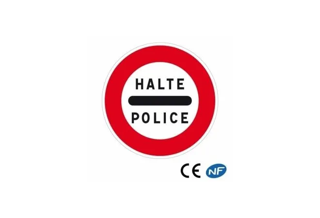 Panneau Code de la route indiquant un arrêt obligatoire à un poste de police (B5b). Selon les normes françaises et européennes en vigueur, le panneau routier possède toutes les qualités requises et est très résistant. Un système de réglage latéral vous permettra de l'installer facilement où vous le souhaitez. Son triple bord sécurisé évitera les incidents de coupures aux mains lors de la pose.