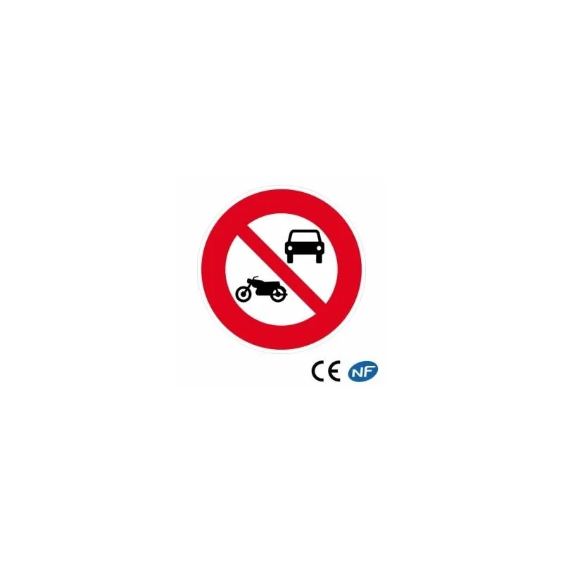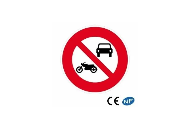 Panneau de signalisation indiquant un interdit à tous les véhicules à moteur sauf les cyclomoteurs (B7a). Panneau de route conforme aux normes en vigueur pour la France et l'Europe. Haute qualité, système de réglage latéral pour une mise en place sans difficulté, même en zone urbaine. Bord triple et sécurisé pour éviter les incidents lors de la pose.