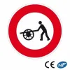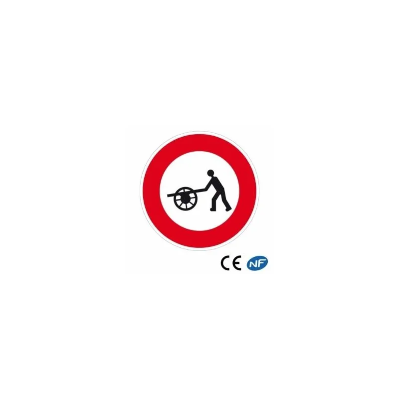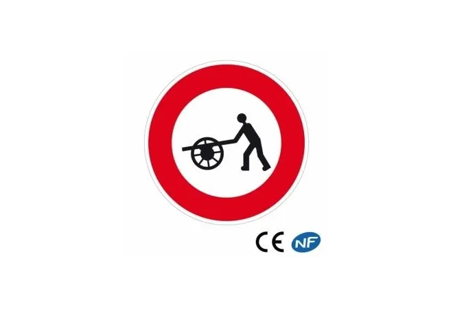 Panneau de circulation pour entreprise de travaux publics et collectivités. Panneau routier indiquant un accès interdit aux voitures à bras (B9e). Conforme aux normes actuelles pour la France et l'Europe, ce panneau de signalisation a été fabriqué en France. Il possède un réglage latéral qui vous permet de l'installer partout sans difficulté même en zone urbaine.