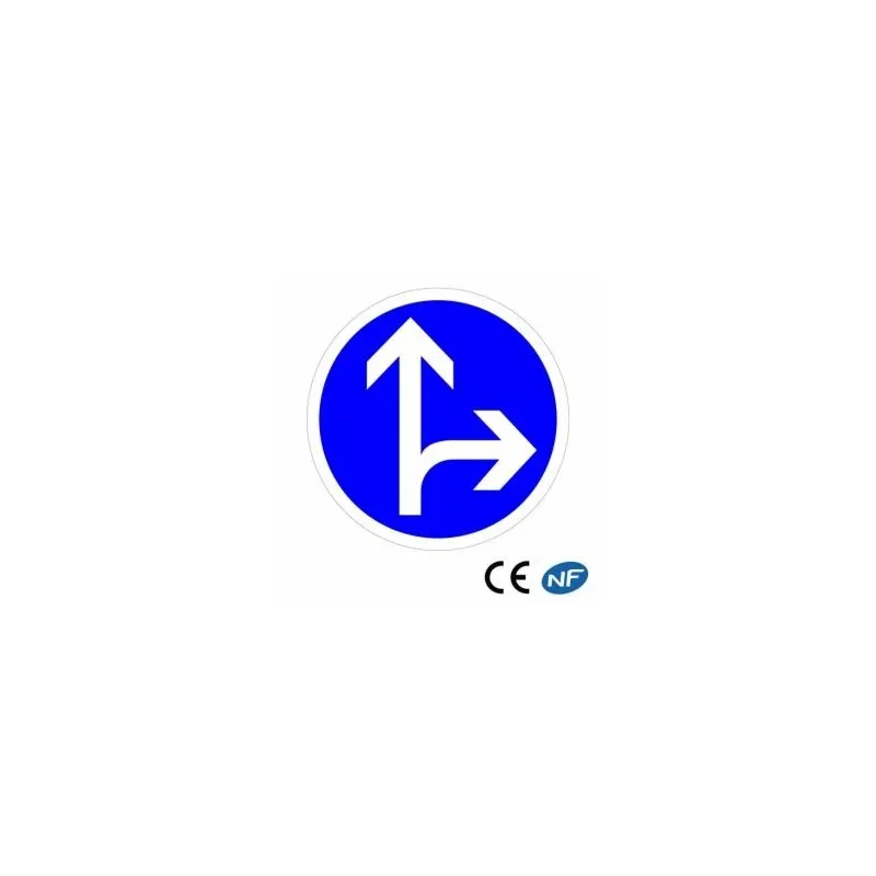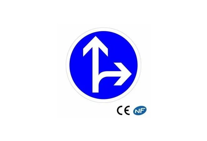 - Panneau de route signalant une obligation d'aller tout droit ou à droite