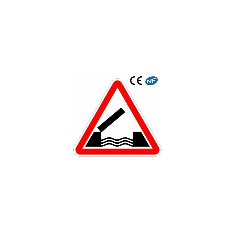 Panneau de circulation ATTENTION pont mobile (A6) fabriqué en France, respectant les normes européennes et françaises. Conçu en aluminium et très résistant grâce à ses rails raidisseurs, ce panneau à un faible impact sur l'environnement. Doté d'un système de réglage latéral, il s'intègre facilement en milieu urbain.