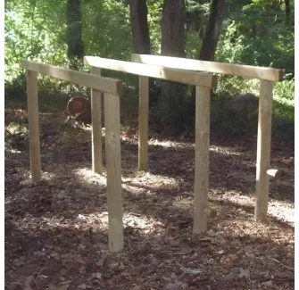Cette station comprend plusieurs agrès en elle. Vous retrouverez l'espalier pour travailler les abdominaux, mais également la planche, l'échelle horizontale, les anneaux, la barre fixe, le marche pied…
