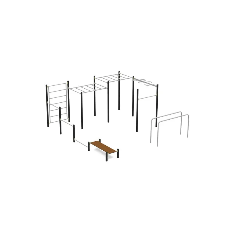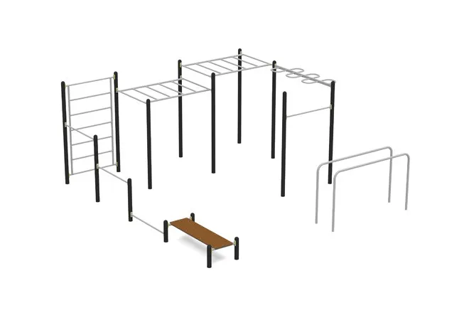 Leader Équipements vous propose un ensemble complet pour un parcours sportif extérieur. Composé de barres, d'échelle ou encore de banc, il sera idéal pour les sportifs.