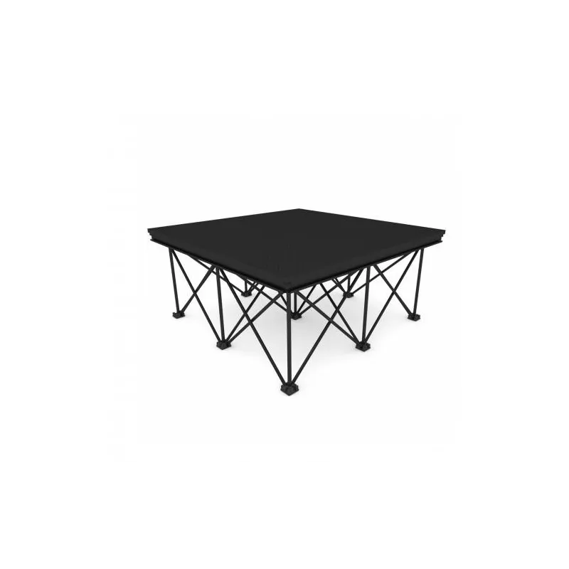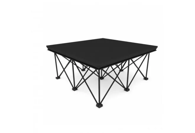 Un podium complet clé en main ! Scène de 6 m² avec 6 plateaux de 1x1 mètre. Plateau en contreplaqué multiplis avec sol antidérapant.
