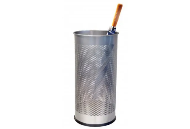 - Porte-parapluies 100% métallique, avec micro perforations, finition laquée époxy gris argent.