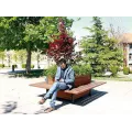 Jardinière cubique avec 4 bancs intégrés en bois exotique et métal - Leader Equipements