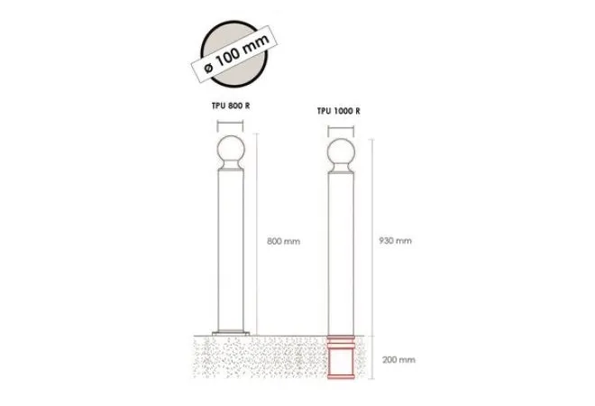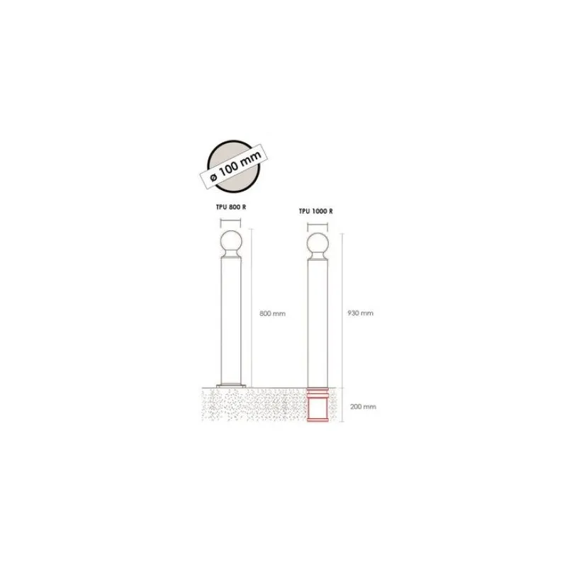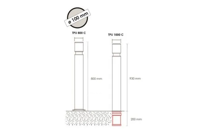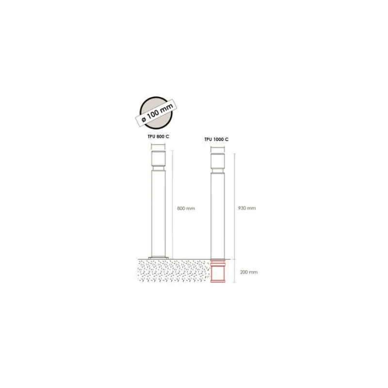 - Ø 100 mm - à sceller - H 1130 mm - 4.5 Kg - RAL 9005 / RAL 6005 / RAL 7016 / RAL 8017