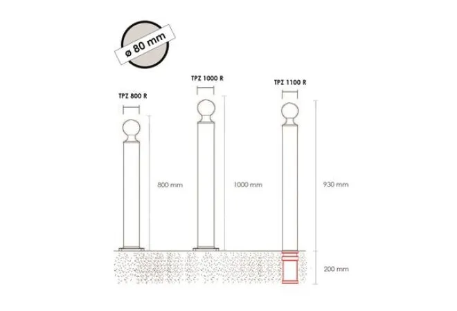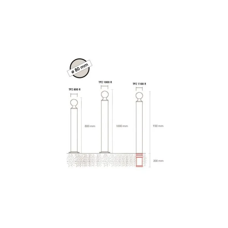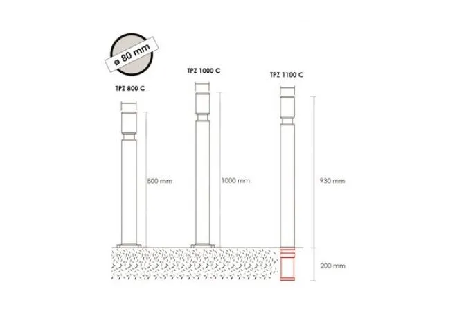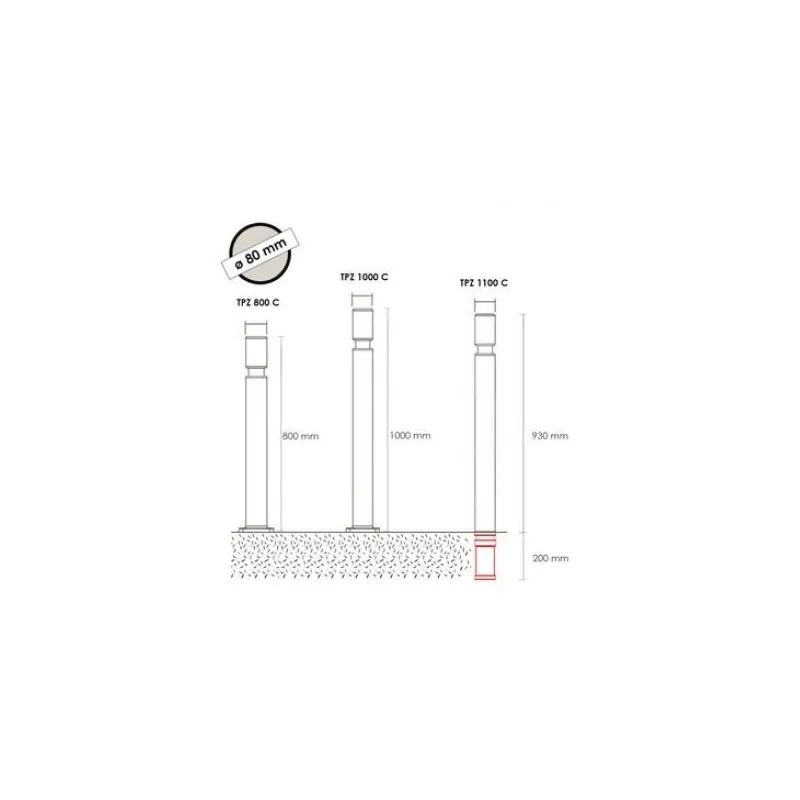 - Ø 80 mm - à sceller - H 1130 mm - 3.8 Kg - RAL 9005 / RAL 6005 / RAL 7016 / RAL 8017