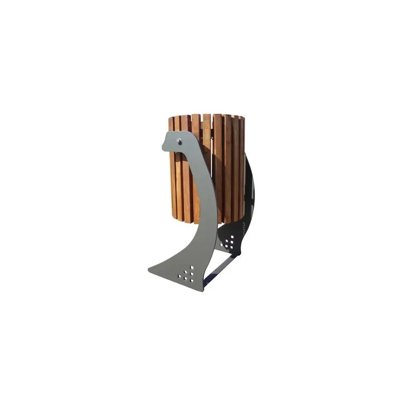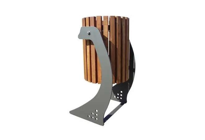 Afin de moderniser vos espaces publics, Leader Équipements vous propose la gamme Soledad, avec ici une corbeille de ville au piétement travaillé en acier, aux lignes courbes et aux lames en bois exotique. Choisissez l'élégance et la modernité de ce mobilier urbain qui s'adapte à tous les centres-villes, parcs, jardins publics, écoles, etc.