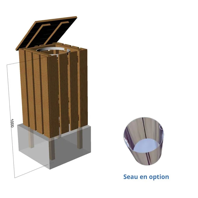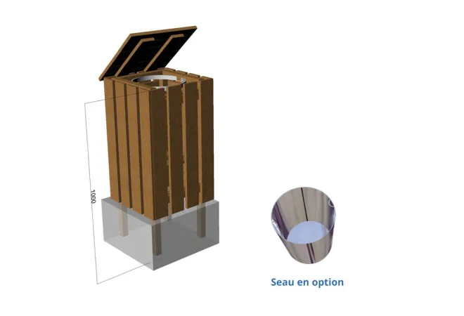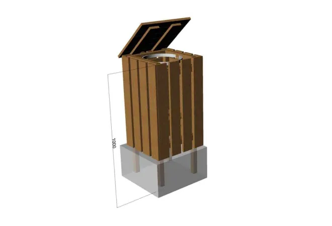 La corbeille en bois, que l'on appelle "corbeille campagnarde" est une corbeille faite de lattes de bois, ajourés. Cette corbeille dispose d'un couvercle tenu par une chaîne pour éviter l'ouverture peu commode à 270 °. Cette corbeille est créée dans un bois autoclave de classe 4.