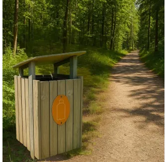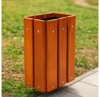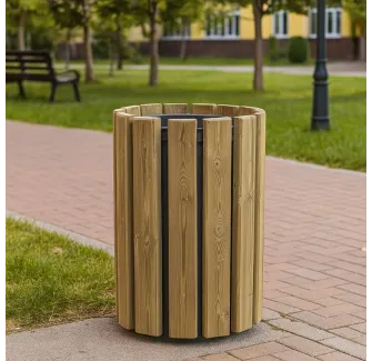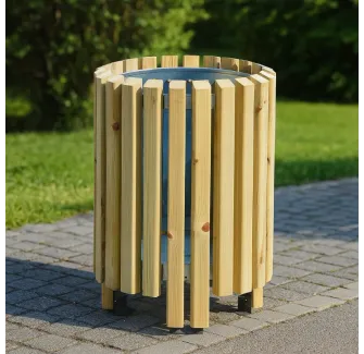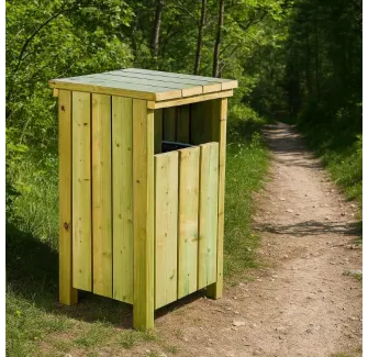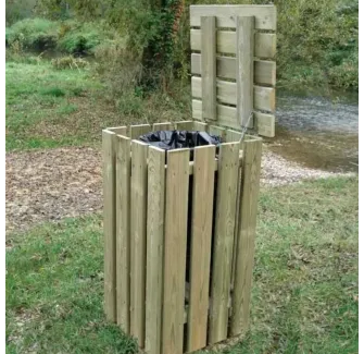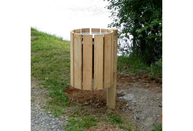 La corbeille en bois Féroé est une corbeille de forme cylindrique, avec un arceau amovible pour l'enlèvement du sac. Cette corbeille en pin traité autoclave est garantie 10 ans.