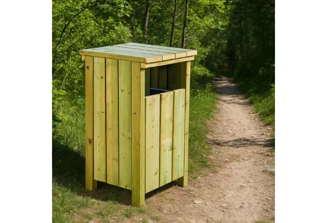 Afin d'aménager des points de collecte de déchets dans vos espaces publics, Leader Équipements vous propose la poubelle urbaine réalisée en Pin du Nord traité autoclave et certifié FSC.