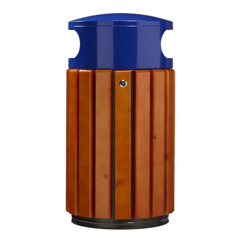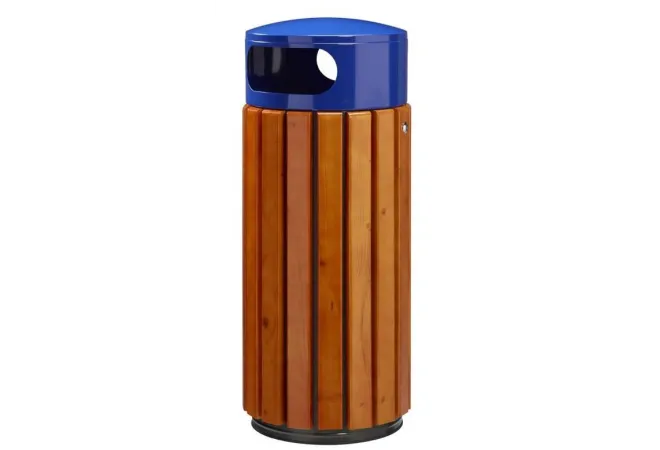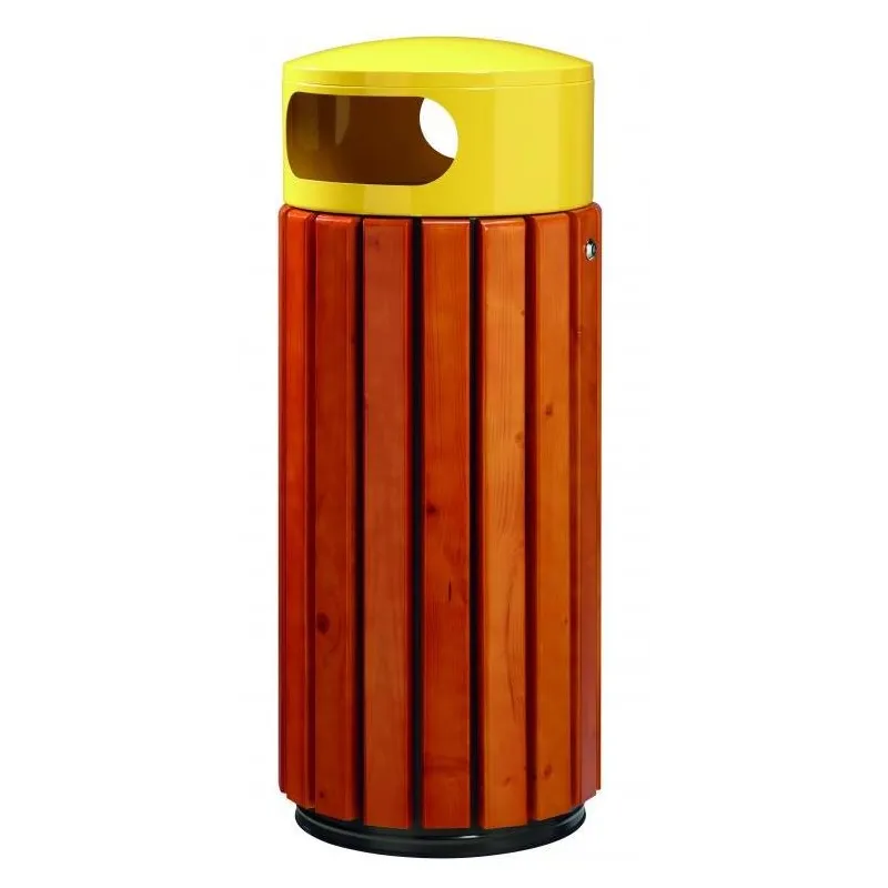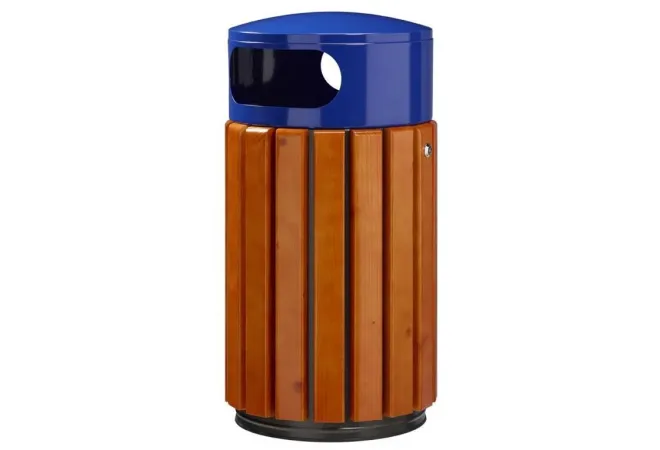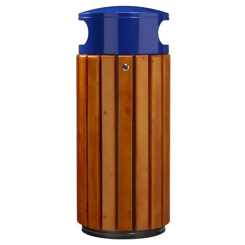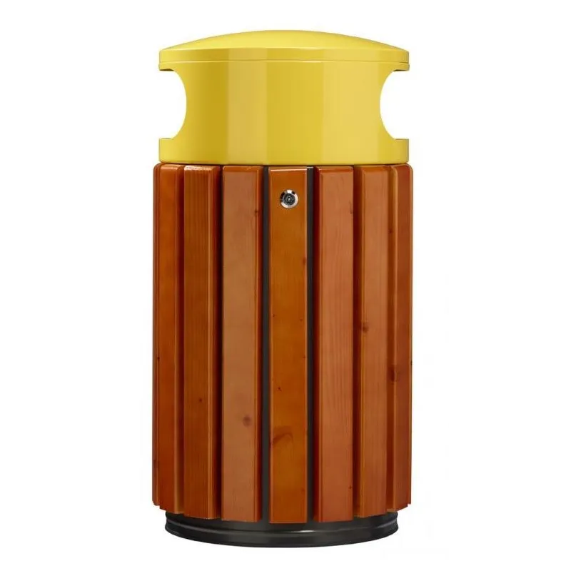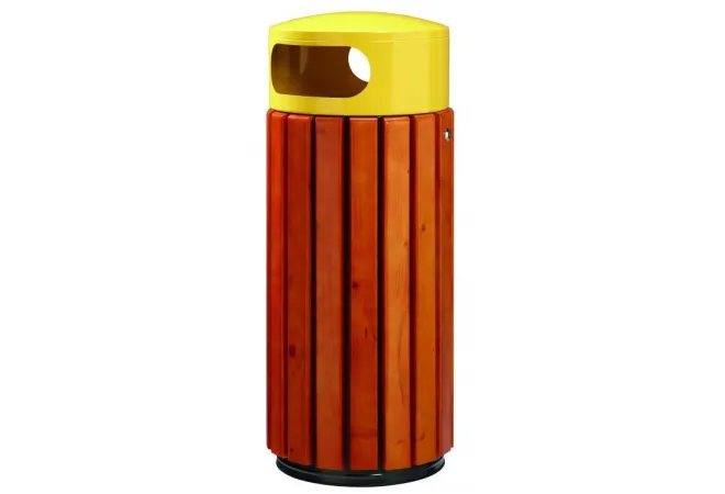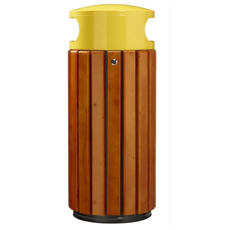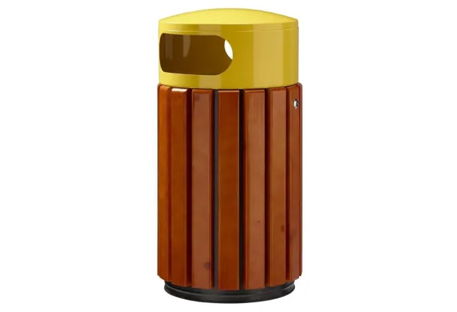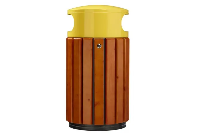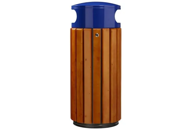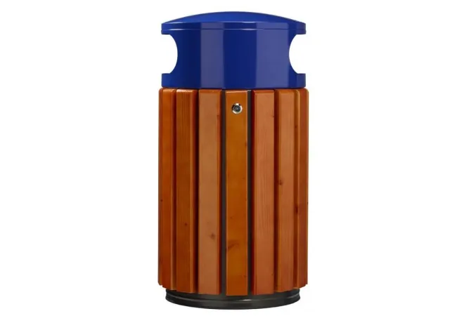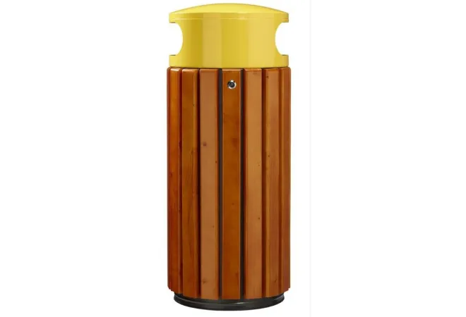 Corbeille de rue en bois et métal, disponible en version 40L ou 60L. Notre poubelle de rue dispose d'une serrure à clé triangle pour éviter tout vandalisme.