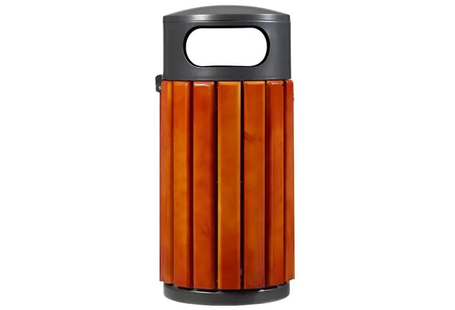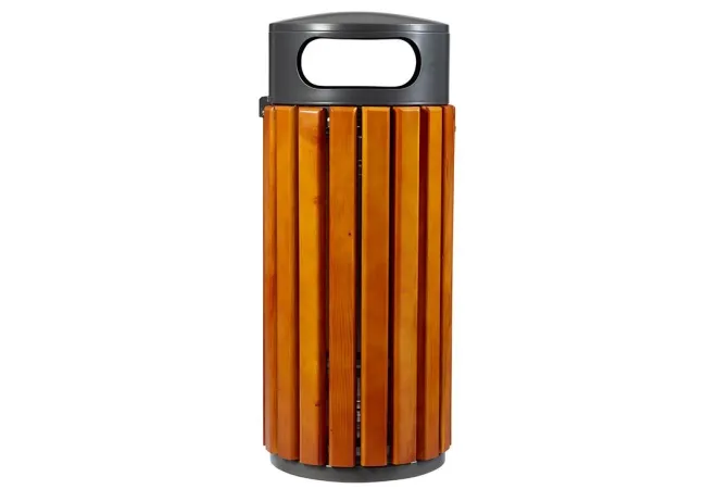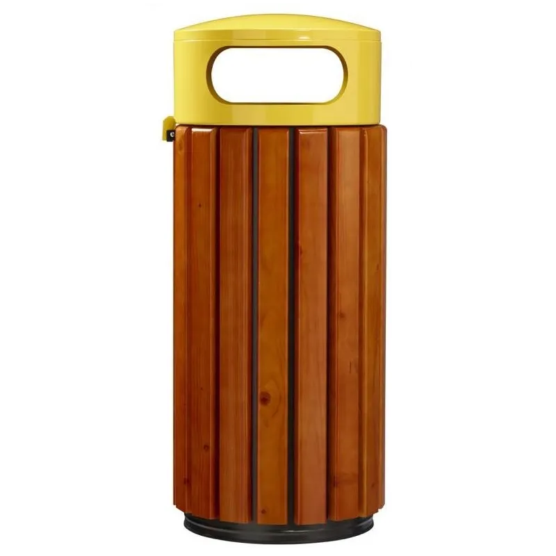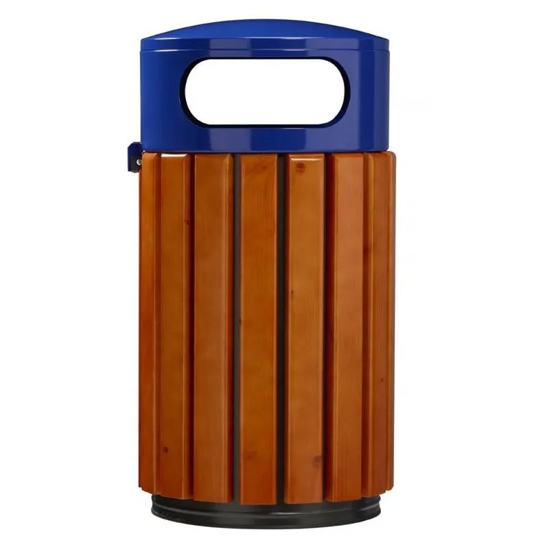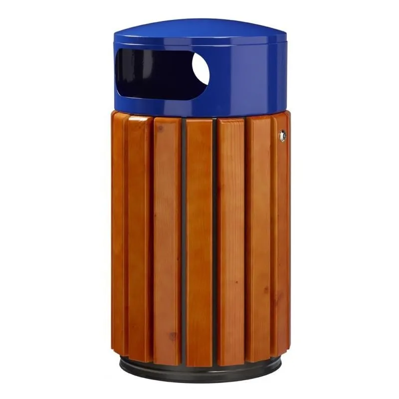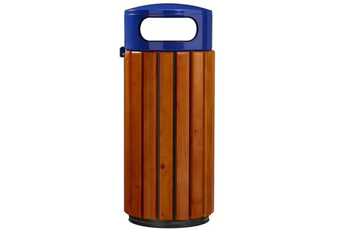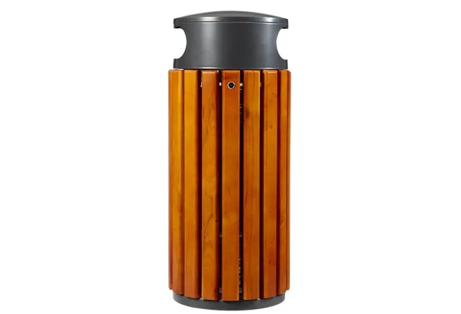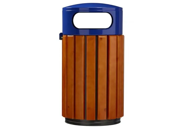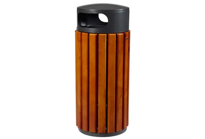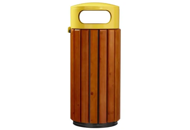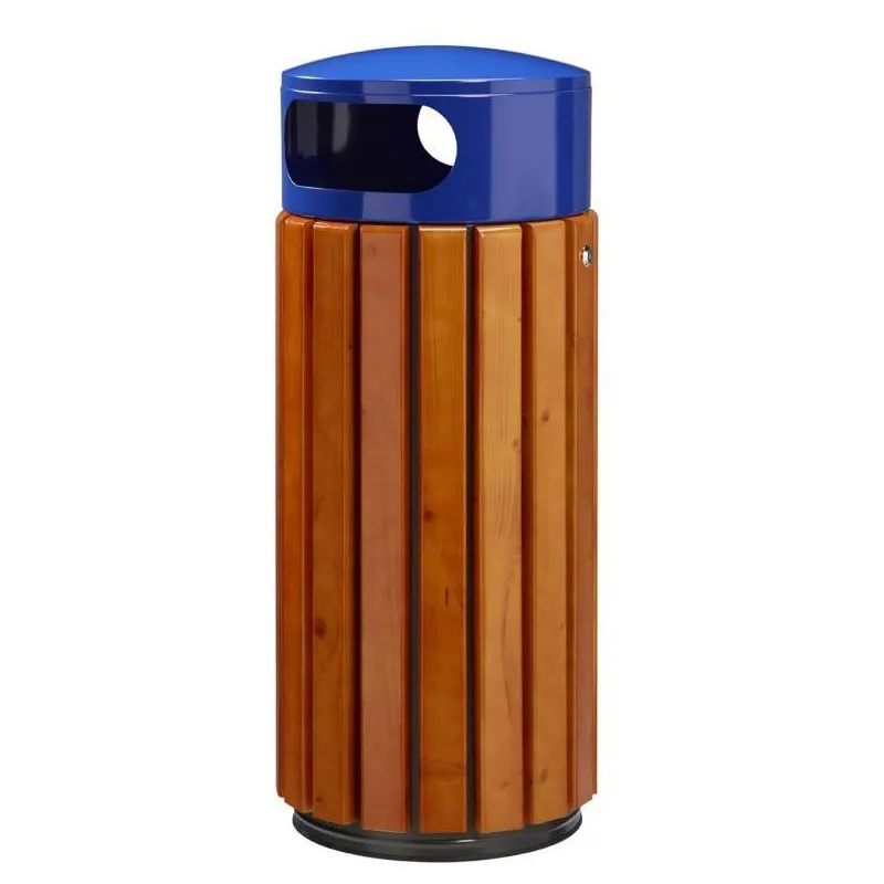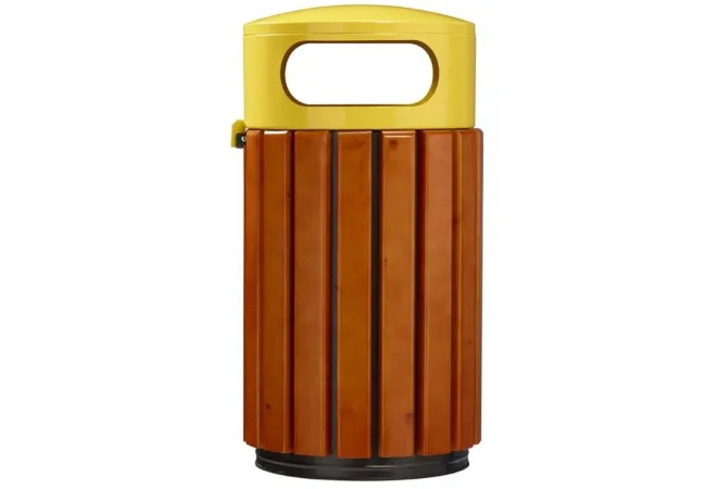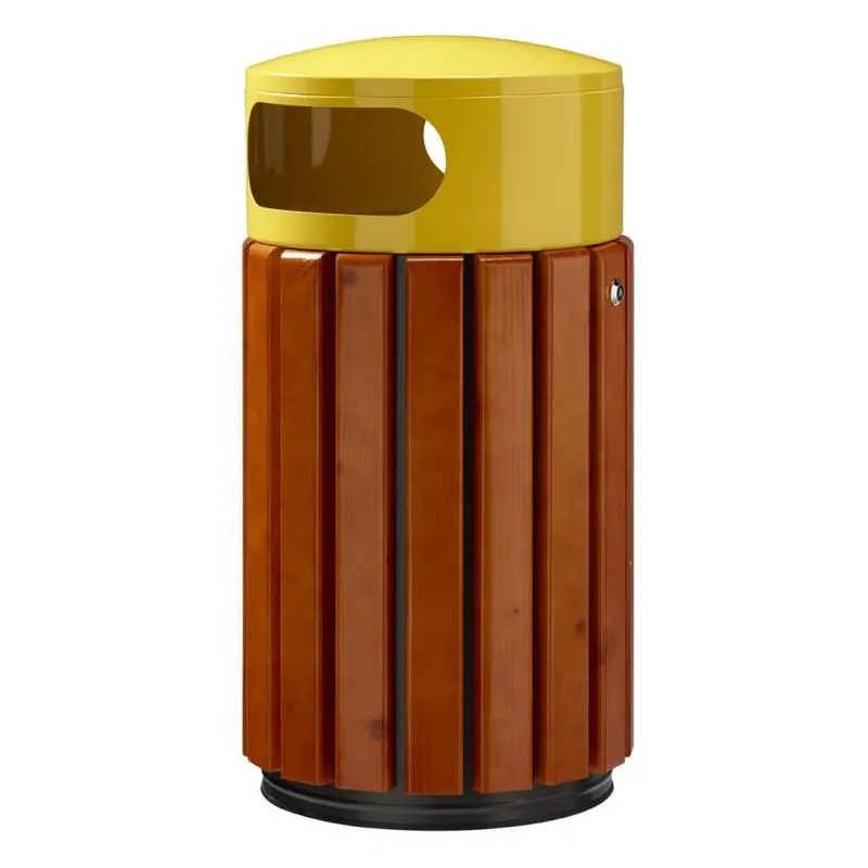 Corbeille de rue en bois et métal, disponible en version 40L ou 60L. Notre poubelle de rue dispose d'une serrure à clé triangle pour éviter tout vandalisme.