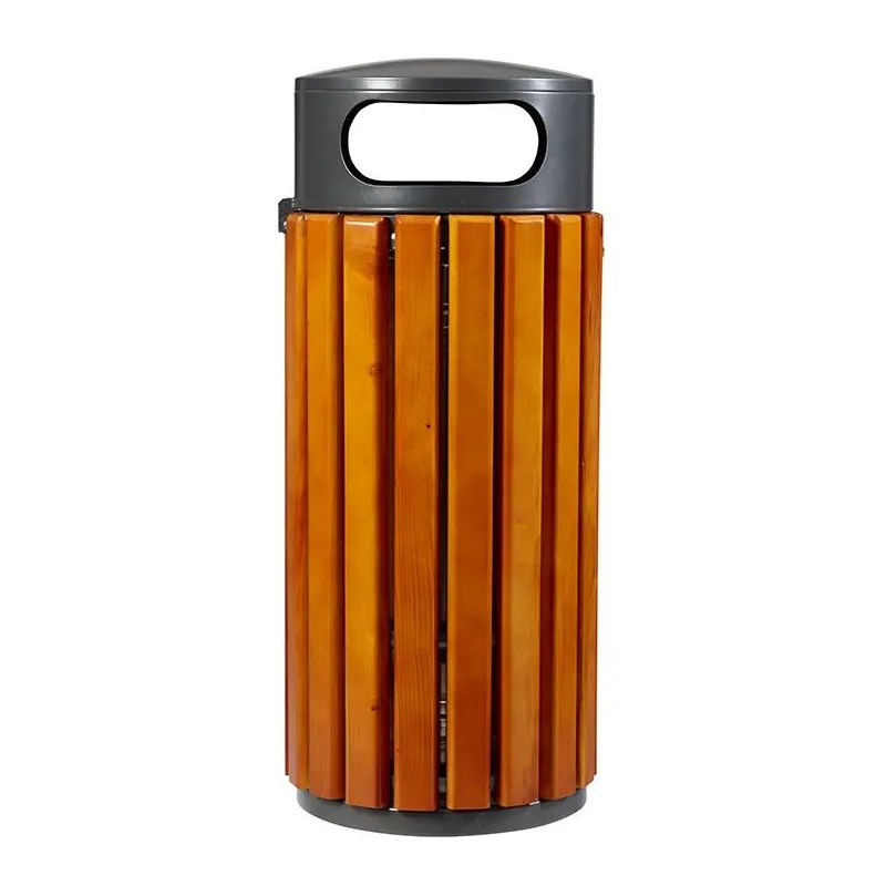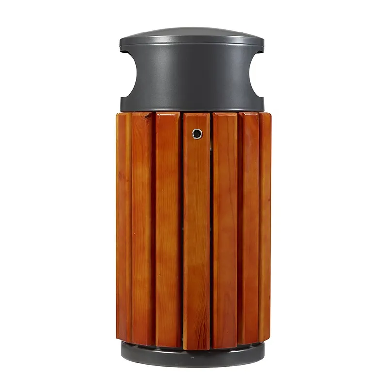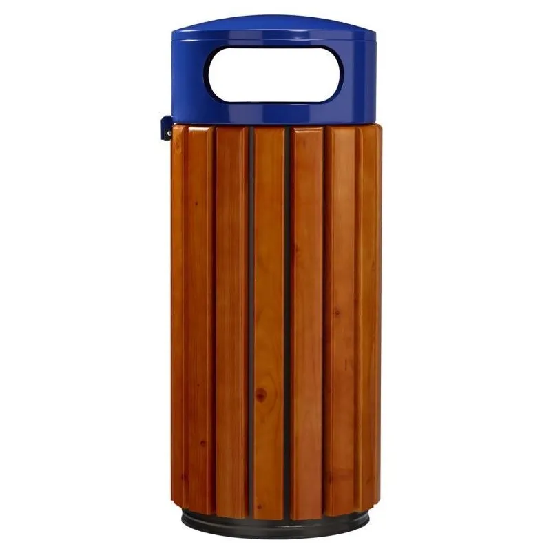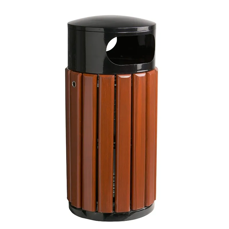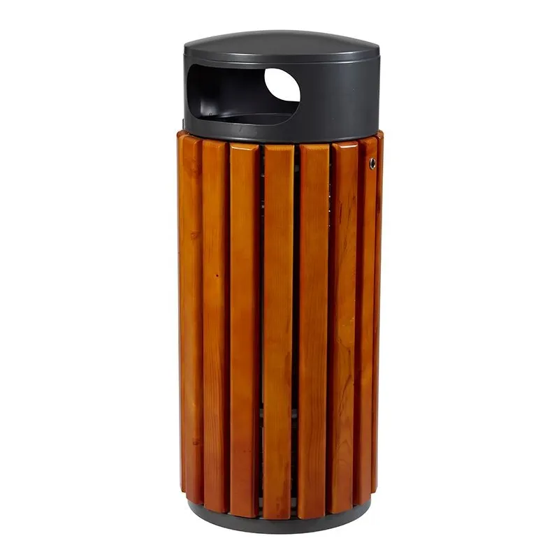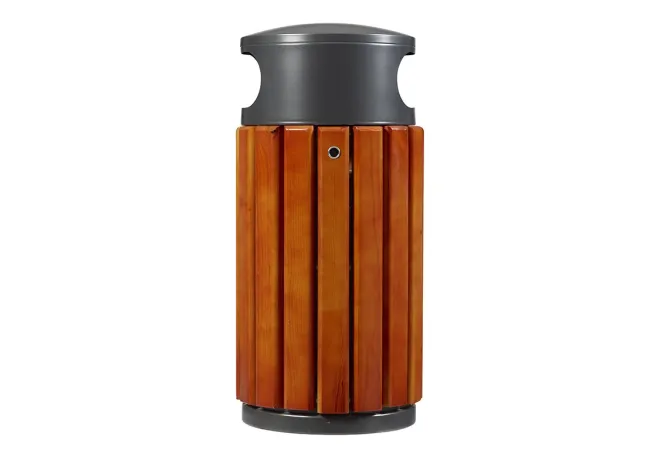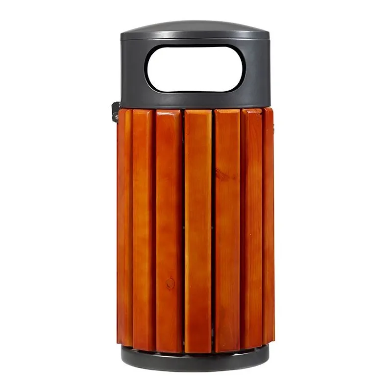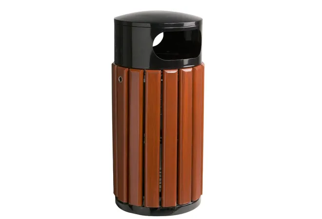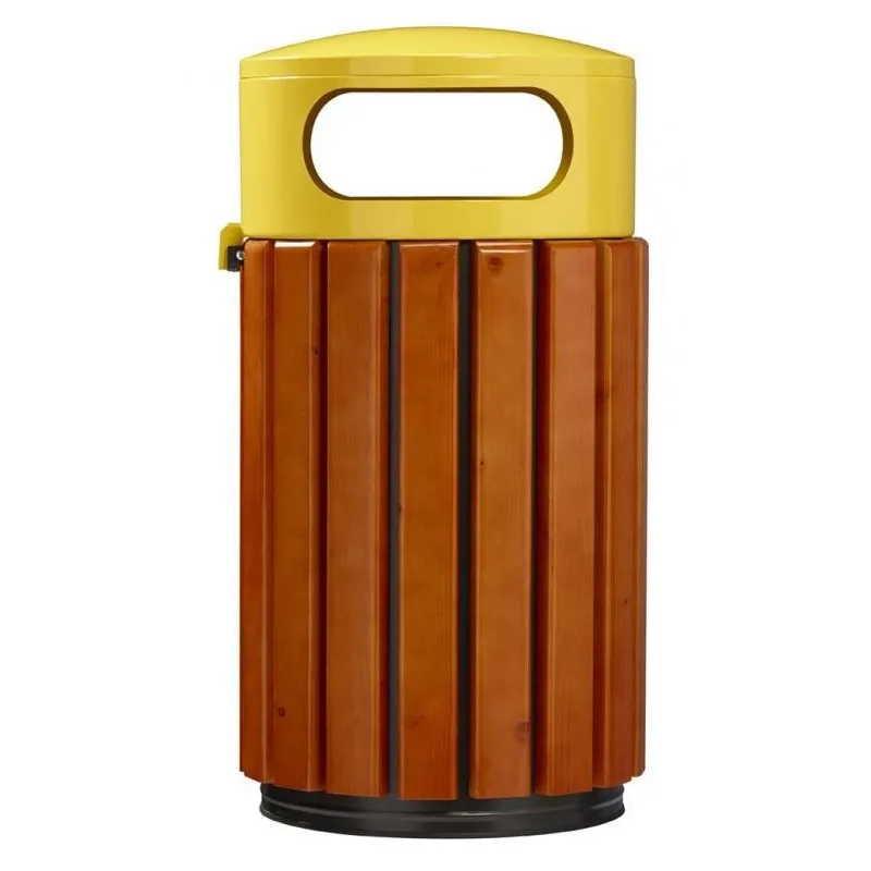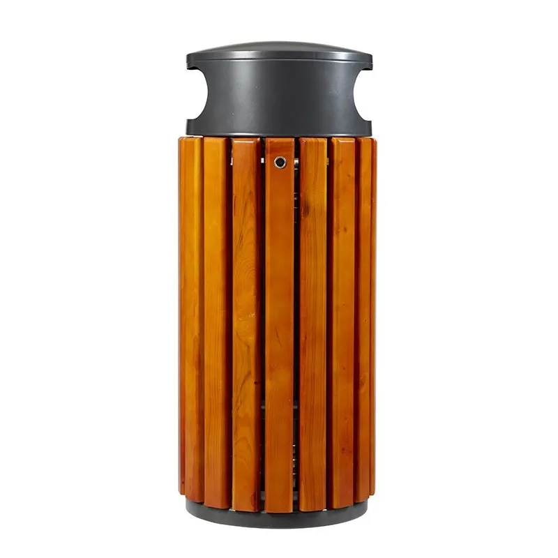 Corbeille de rue en bois et métal, disponible en version 40L ou 60L. Notre poubelle de rue dispose d'une serrure à clé triangle pour éviter tout vandalisme.