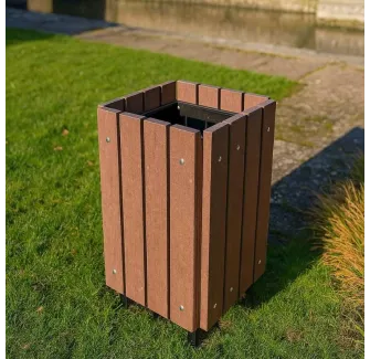 Leader Équipements vous propose la corbeille urbaine extérieure réalisée à base de briques alimentaires. Mobilier urbain en briques alimentaires recyclé est tout aussi résistant que du bois, qui ne demande aucun entretien !