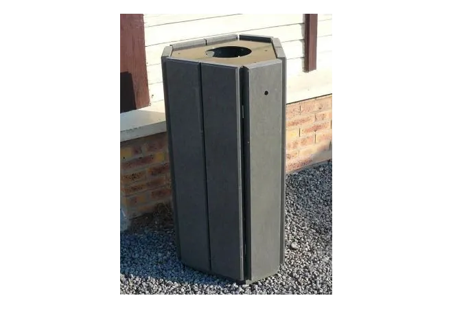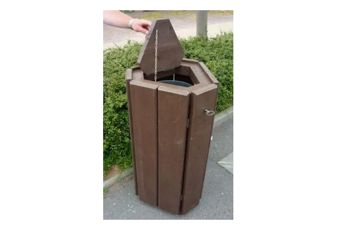 Pour l'aménagement de vos espaces verts et citadins, choisissez la corbeille extérieure Parc en recyclé.