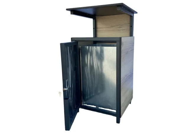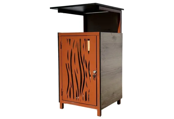 La poubelle extérieure avec toit Urba, équipée d'un porte-sac et d'une capacité de 60 litres, est conçue en acier traité anti-corrosion. Son revêtement de peinture thermolaquée, disponible en gris anthracite ou corten/terracotta, offre une résistance aux rayons UV et aux intempéries. Agrémentée de motifs métalliques ajourés découpés au laser et de panneaux en HPL, elle ajoute une touche d'élégance et de modernité. Son toit assure un écoulement efficace de la pluie. Fonctionnelle et esthétique, la corbeille de rue Urba est adaptée aux espaces extérieurs. Sa robustesse et son design soigné contribuent à maintenir la propreté des environnements urbains.