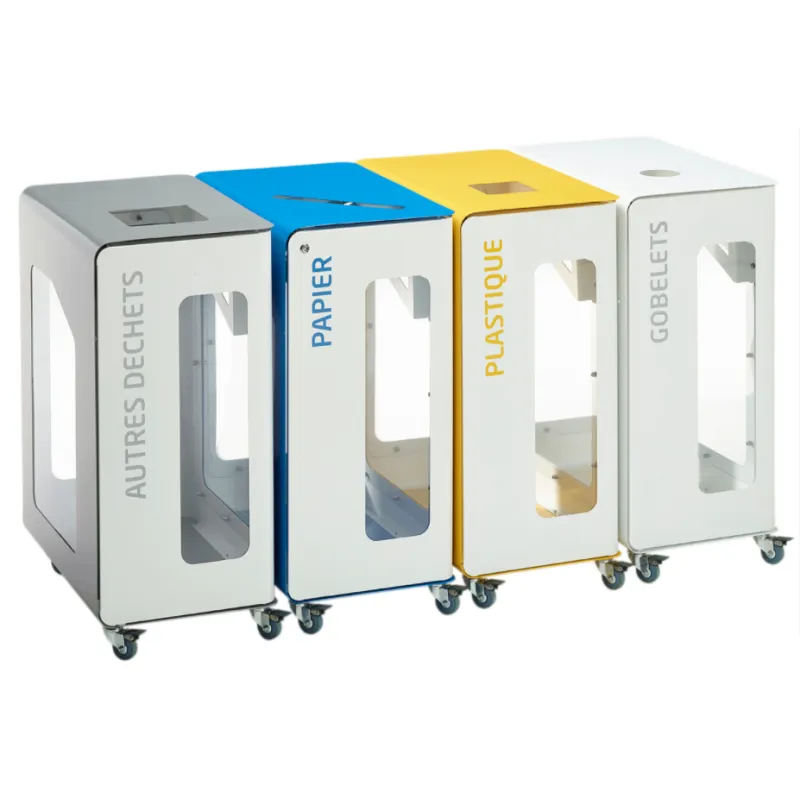 Bornes de tri sélectif 90L Vigipirate sans serrures avec roulettes.