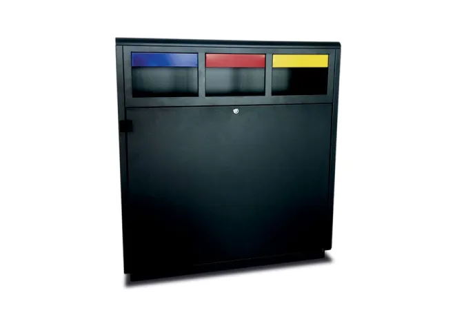 Meuble poubelle pour tri sélectif. Meuble disposant de 3 portes-sacs et d'une serrure à clé.